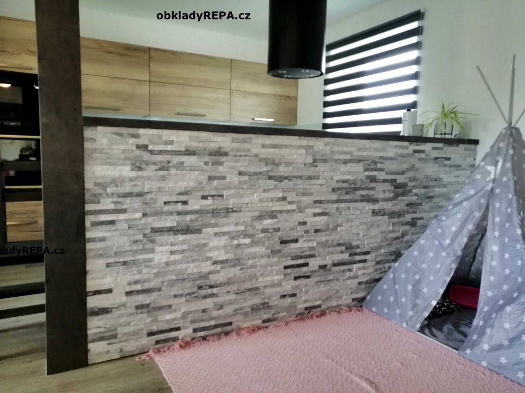 Obkladový kámen Kvarcit Bílo-Šedý je křemencový obklad, který vyniká svým příjemně světlým zabarvením. Dochází ze ke krásnému prolínání typicky přírodních barev kamene, v tomto případě bílé a šedé. Malá tloušťka obkladu umožňuje montáž kamenného obkladu na nejrůznější místa. Využití v interiéru i exteriéru. Velmi nízká cena za přírodní materiál.