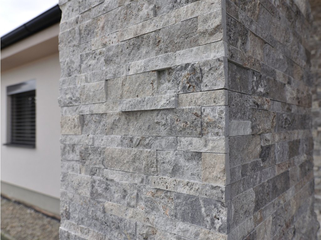 Kamenný obklad TRAVERTIN MOON je ukázkou toho, jak je travertin nádherná a variabilní hornina. V případě tohoto obkladu dochází ke krásnému prolínání bílo-šedých odstínů barev, které nejvíce vyniknou pod dopadem světla. Obklad je formátován do pravidelných panelů. Jednotlivé kousky kamene jsou přilepené k síťce, která drží celý panel pohromadě. Díky tomu je montáž velmi snadná a rychlá.